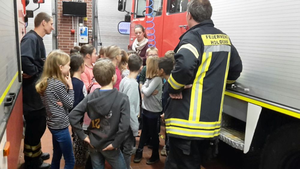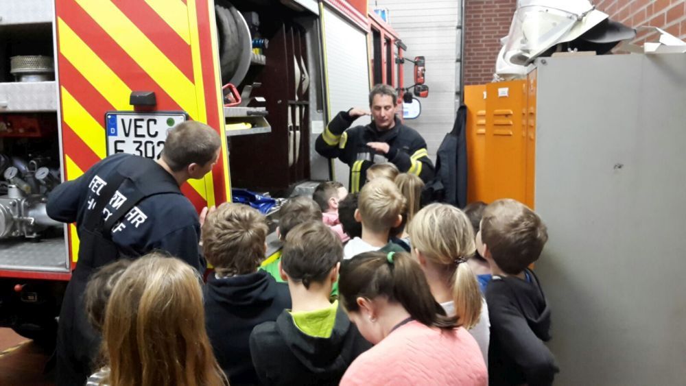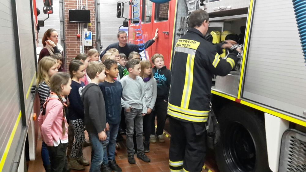 Im Dezember 2016 haben uns mehrere Klassen der Grundschulen Holdorf und Handorf-Langenberg besucht. In Zusammenarbeit beider Feuerwehren in der Gemeinde Holdorf wurde den Drittklässlern das Thema „Feuerwehr“ näher gebracht und ausführlich erklärt. Während einige Kinder schon mal fleißig das Anziehen der Jugendfeuerwehrkleidung übten, ließen sich die Anderen die großen Fahrzeuge erklären.