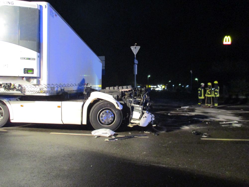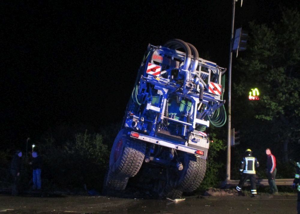 Auf der Kreuzung B214 – Zum Hansa Center kollidierten ein Treckergespann und ein LKW, wobei das Führerhaus des LKW abriss und auf der Kreuzung liegen blieb. Dabei geriet das Treckergespann auf die Gegenfahrbahn und riss einen PKW mit in den Graben, wo beide Fahrzeuge letzendlich zum Stehen kamen. Wie durch ein Wunder wurden beim Unfall keine Personen schwer oder lebensgefährlich verletzt. Sie wurden in umliegende Krankenhäuser gebracht.